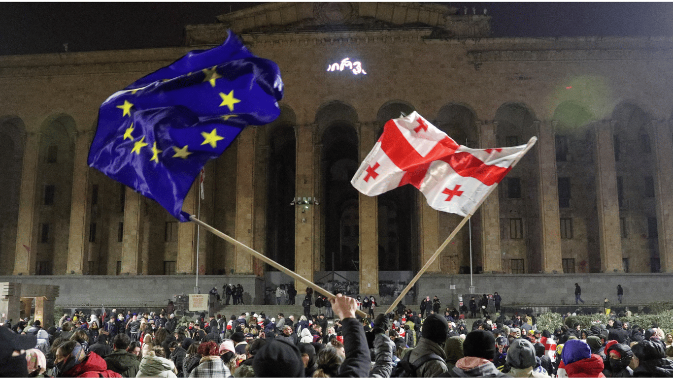 Вчера, 12 декабря, в Тбилиси прибыла делегация Европарламента, которую встречали сотни людей с флагами ЕС и лозунгами "Georgia - Europe". Протестующие также требовали более решительных санкций, в частности против "Грузинской мечты".